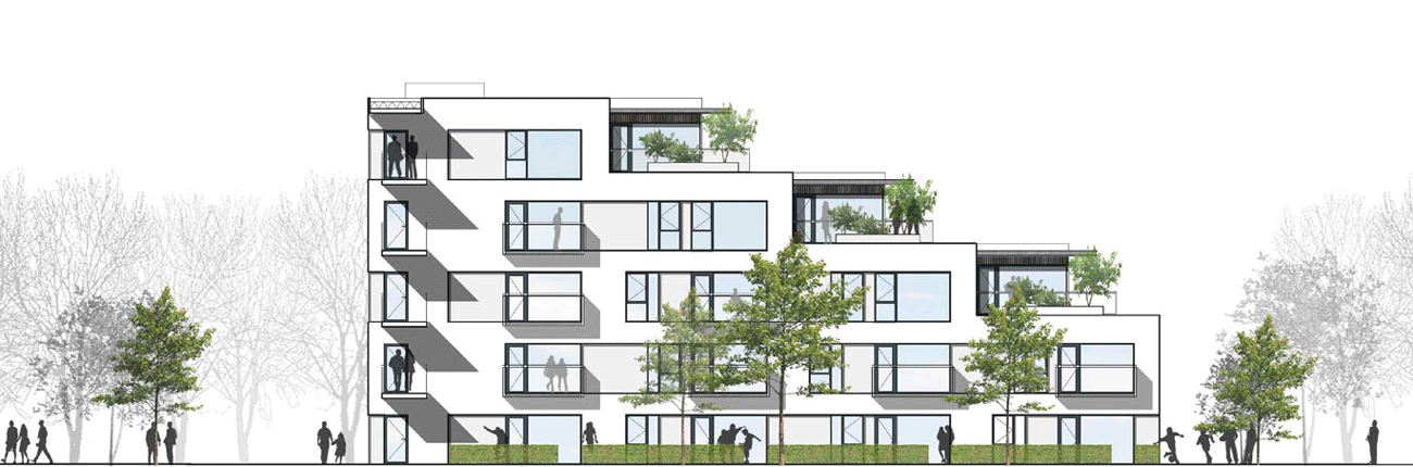 Det eksklusive lejlighedskompleks ligger i anden parket til Limfjorden, og de åbne karréer på to til fem etager giver sammen med længernes skrå vinkler bedst mulig udsigt og masser af sollys til hver eneste lejlighed.