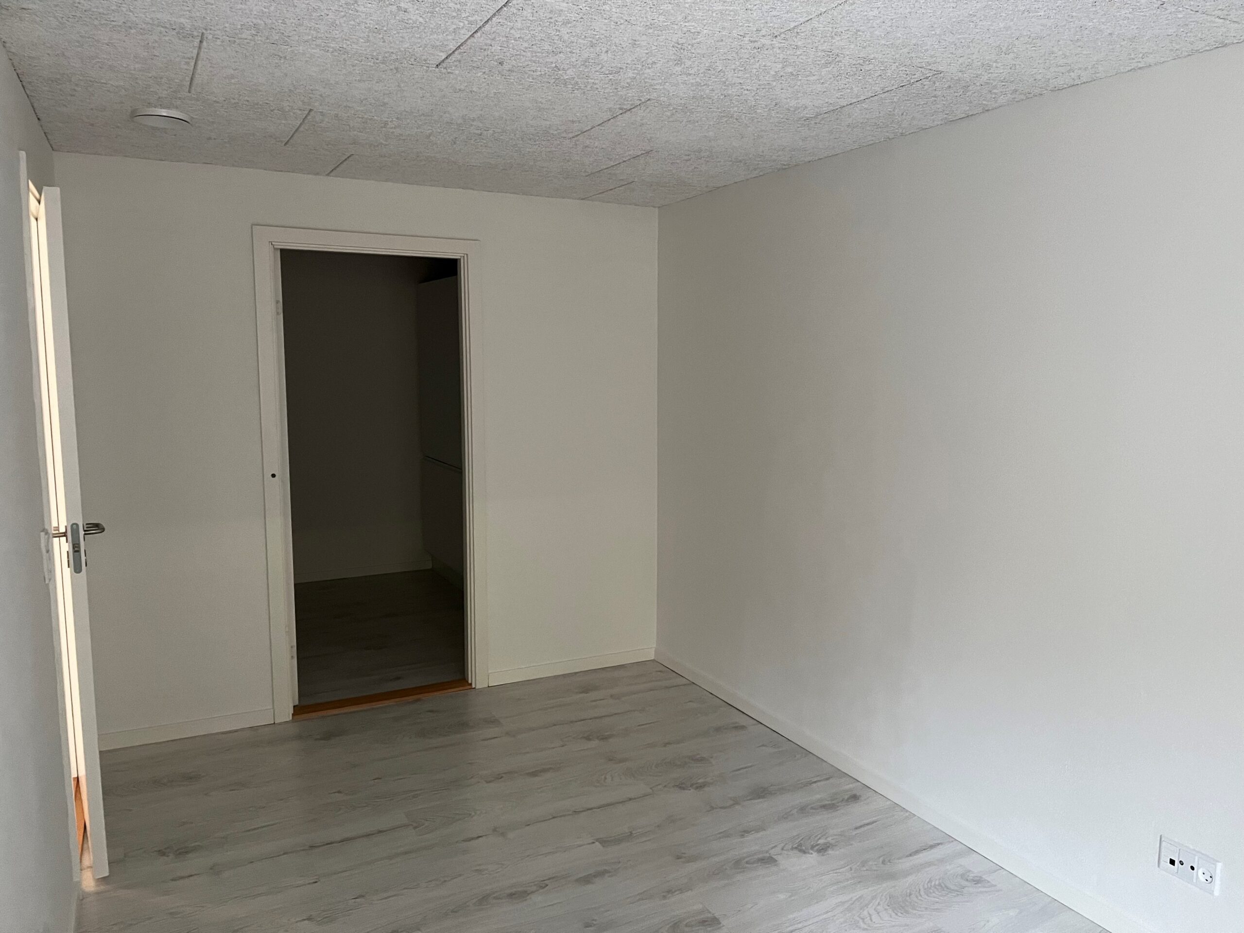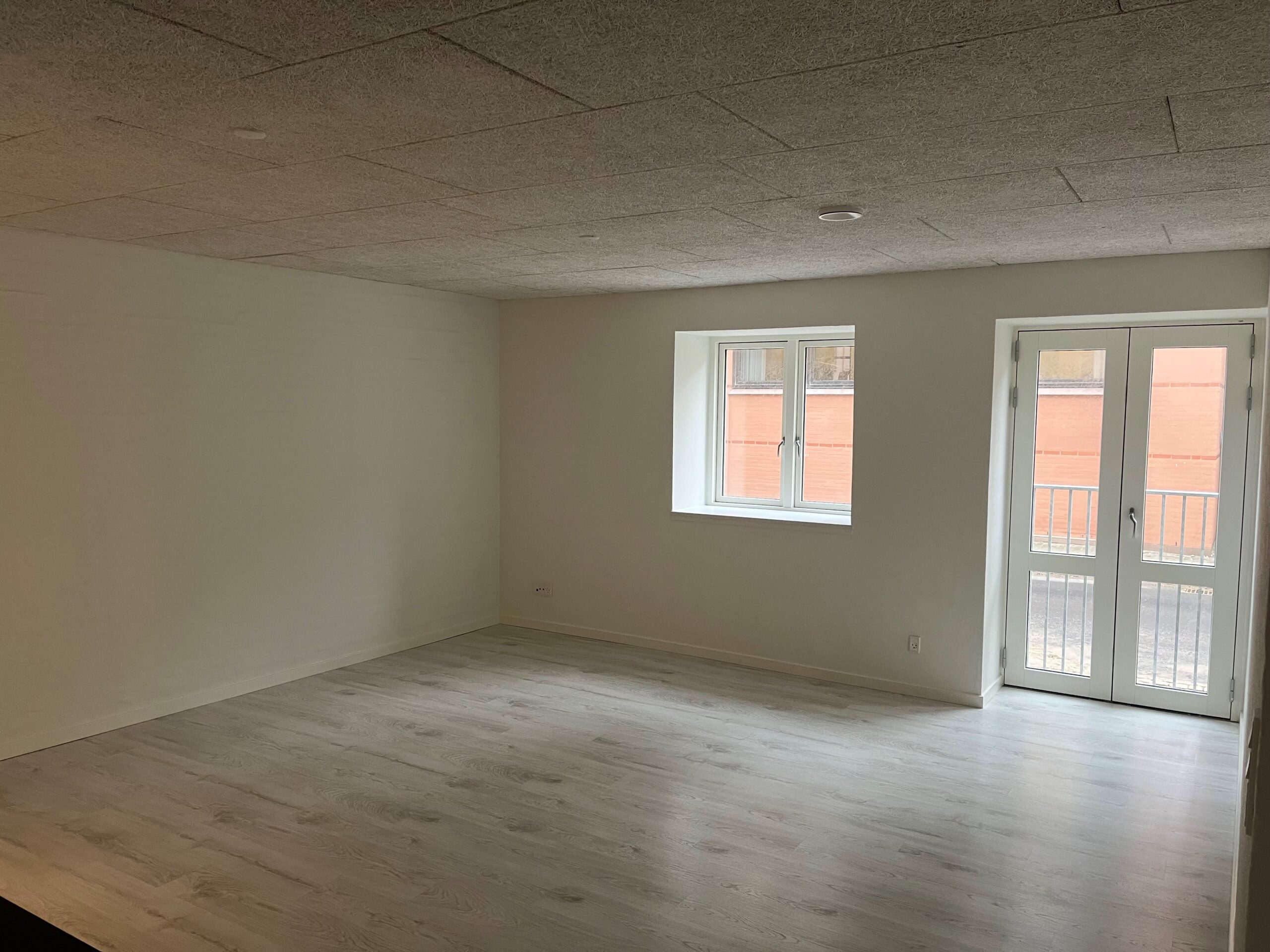 Stuen er både stor og lys, med åbent køkken og gode muligheder for at skabe et hyggeligt og funktionelt opholdsrum. Fra stuen er der direkte adgang til to gode værelser, hvor det ene har walk-in-closet.