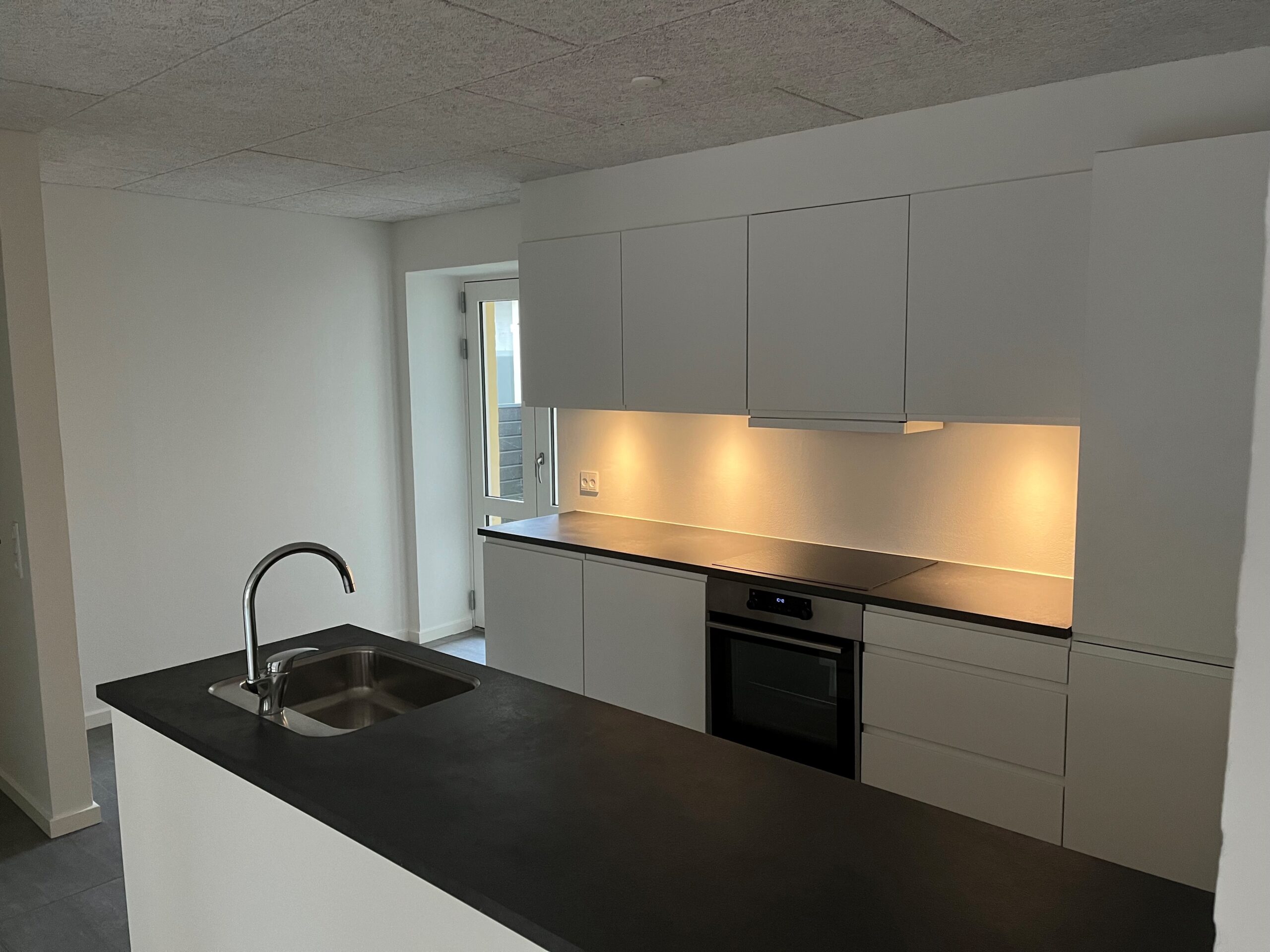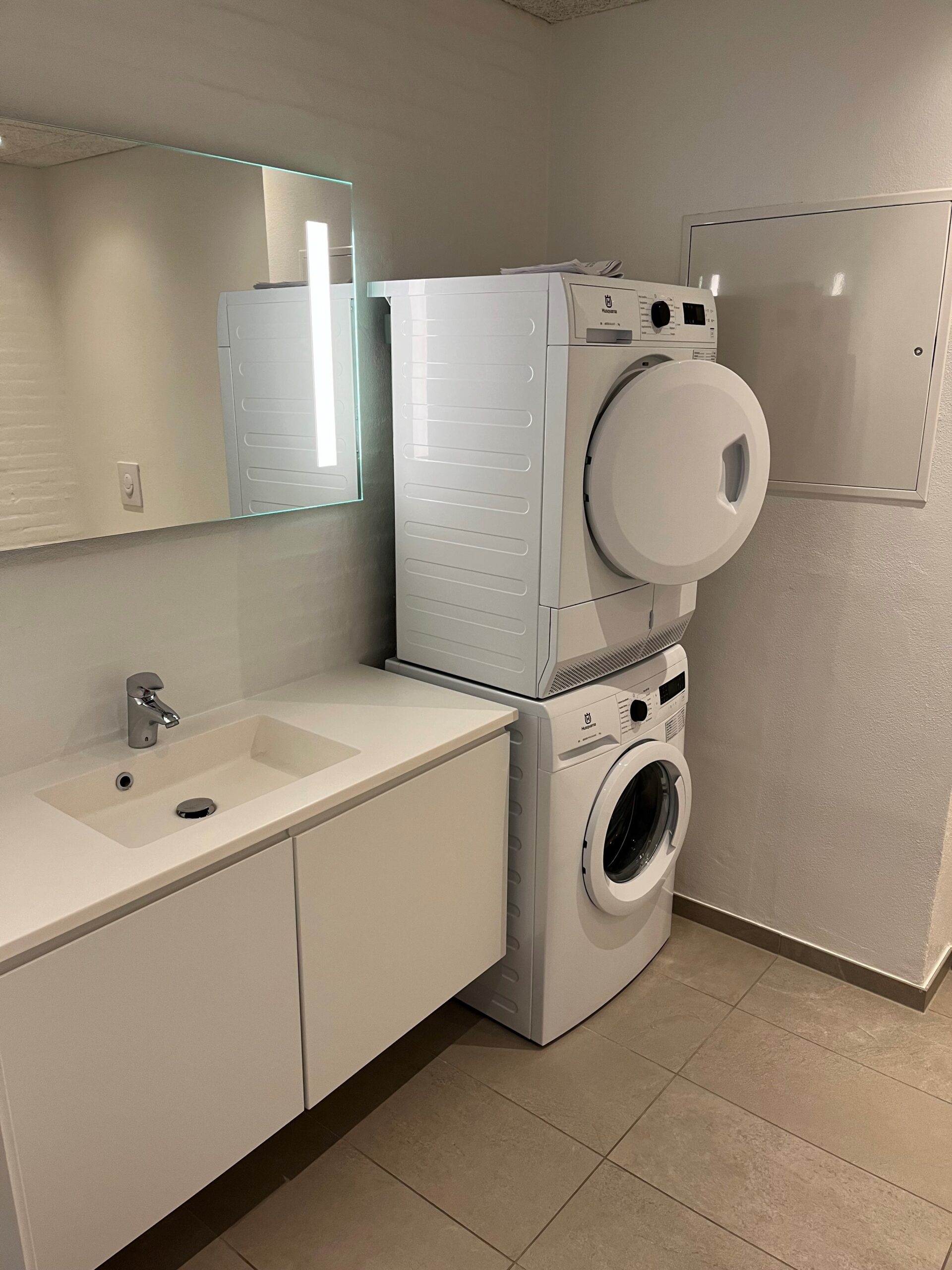 Alt i lejligheden er holdt i lyse og moderne materialer, hvilket skaber en rolig og imødekommende atmosfære. Denne lejlighed er ideel for både singler, par eller mindre familier, der ønsker en central beliggenhed med let adgang til både byen og naturskønne områder.